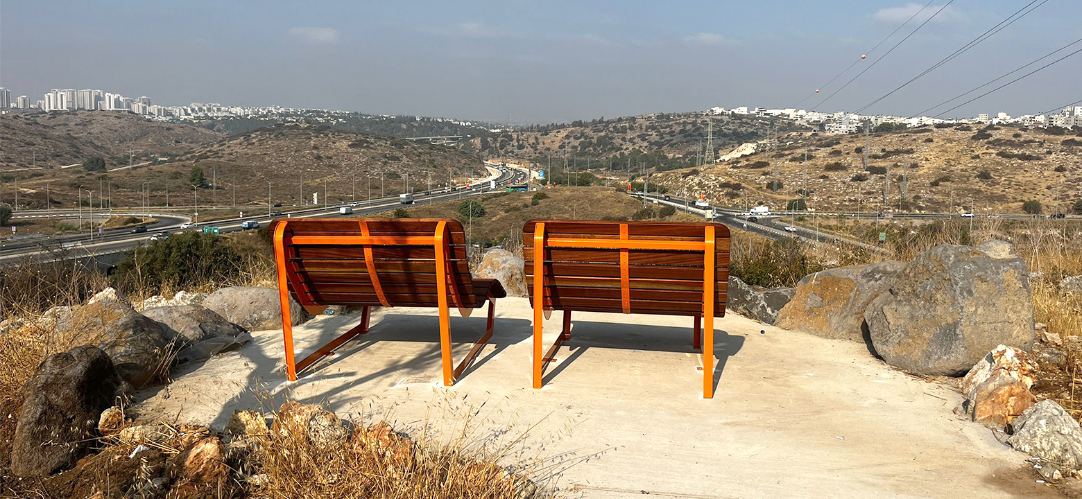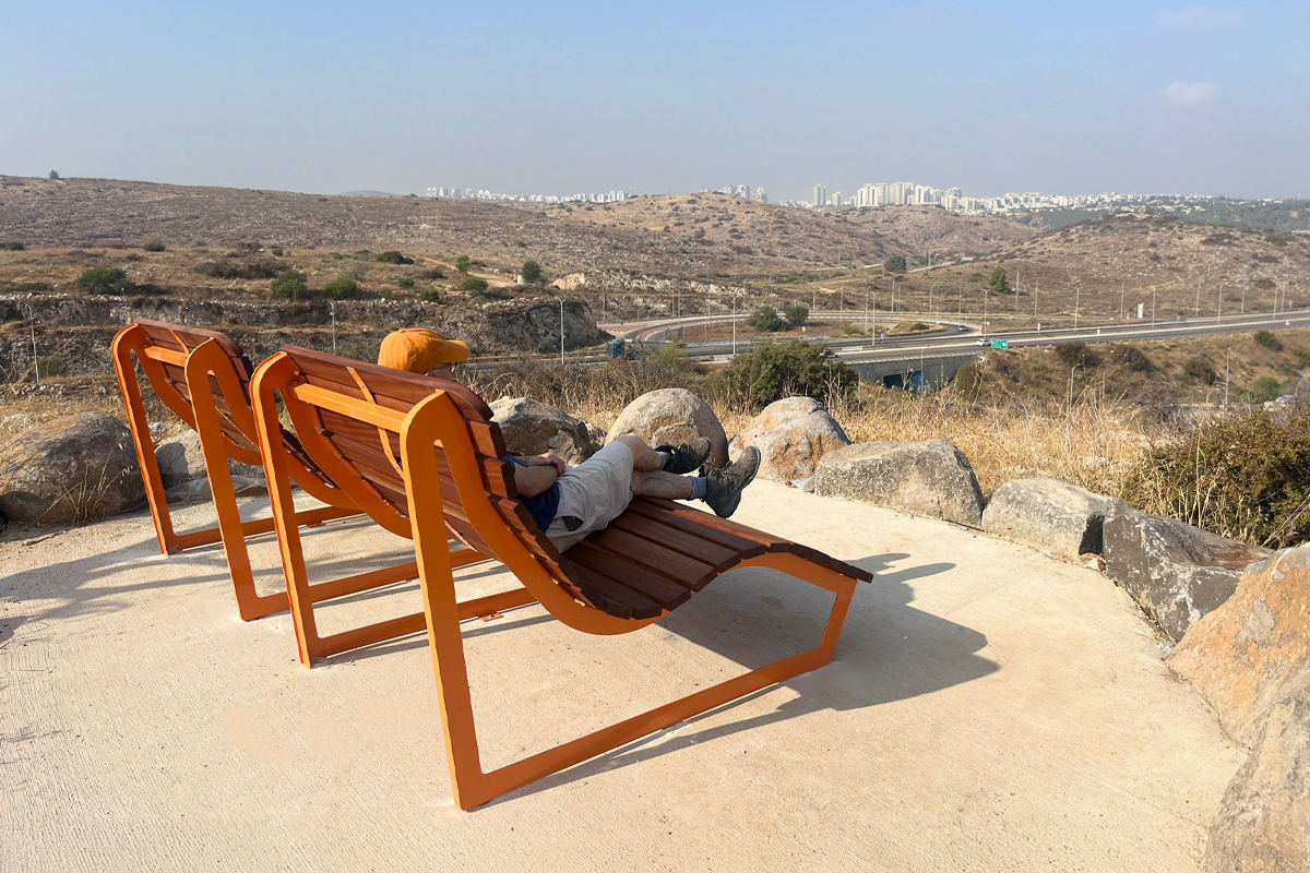 أريكة استرخاء مصنوعة من صفائح فولاذ مجلفنة مطلية بطلاء إلكتروستاتيكي، مع دمج الخشب الطبيعي الصلب. يمكن اختيار لون الجزء المعدني من كتالوج RAL.