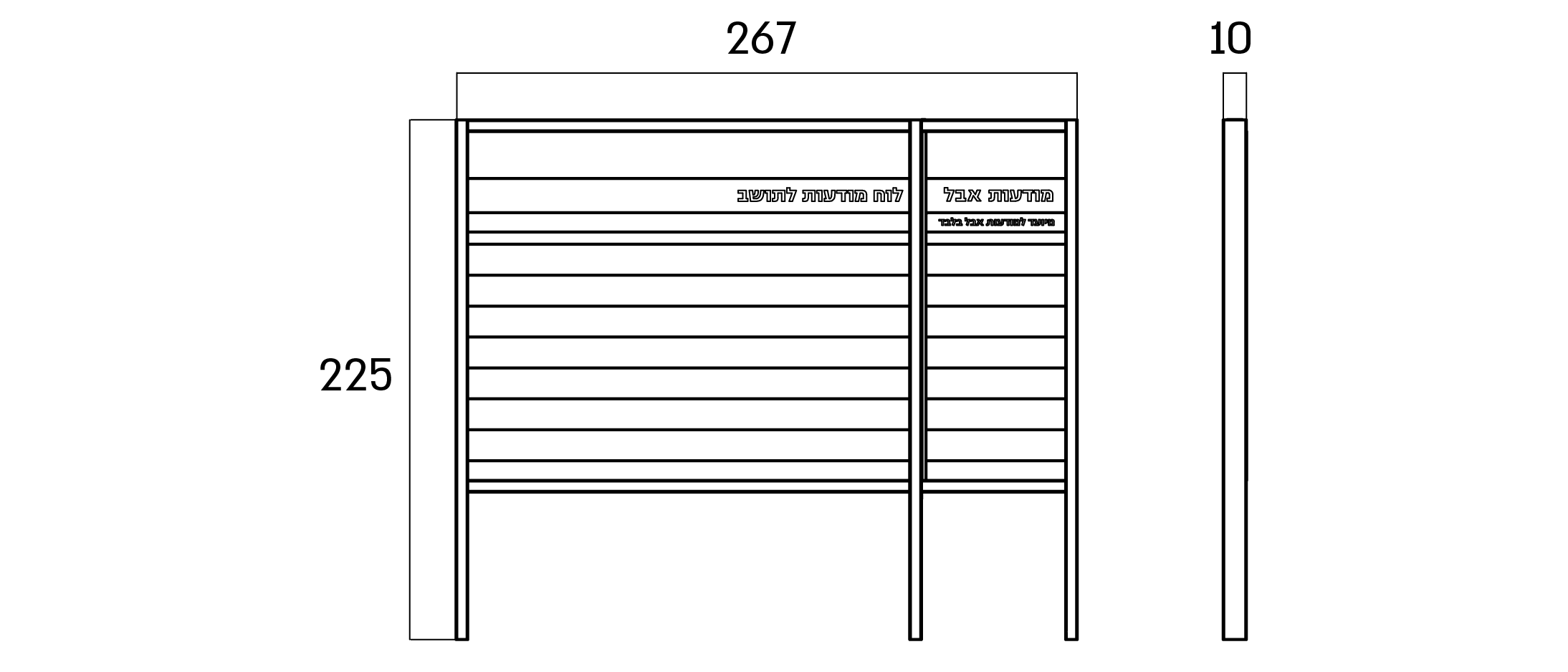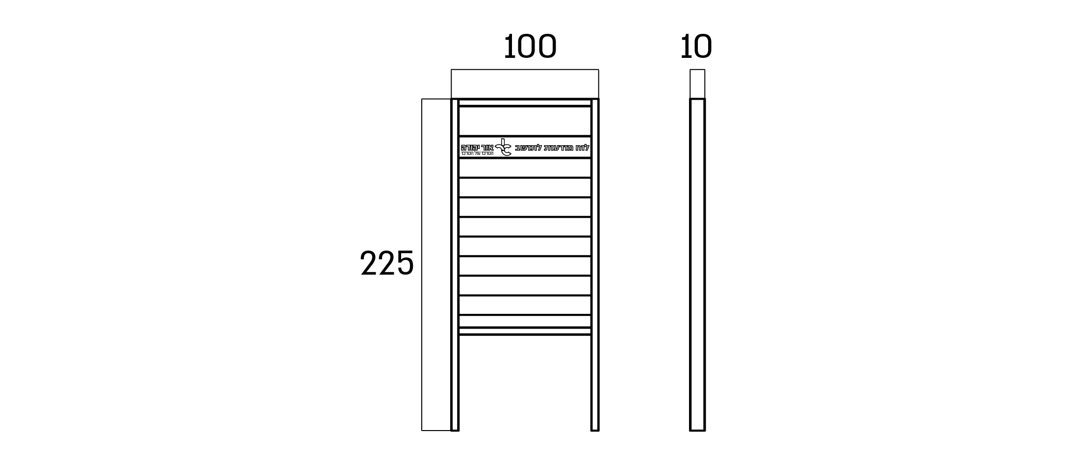 اللوحة الإعلانية مصنوعة من الصفيح المجلفن أو الفولاذ المقاوم للصدأ، مع دمج خشب الصنوبر المبيض، ومطلية بطلاء إلكتروستاتيكي. تتوفر بعدة أحجام يمكن اختيارها عبر “اختر النموذج”. يمكن إضافة شعار أو اسم الهيئة بقص الليزر. لون المعدن متاح للاختيار من كتالوج RAL.