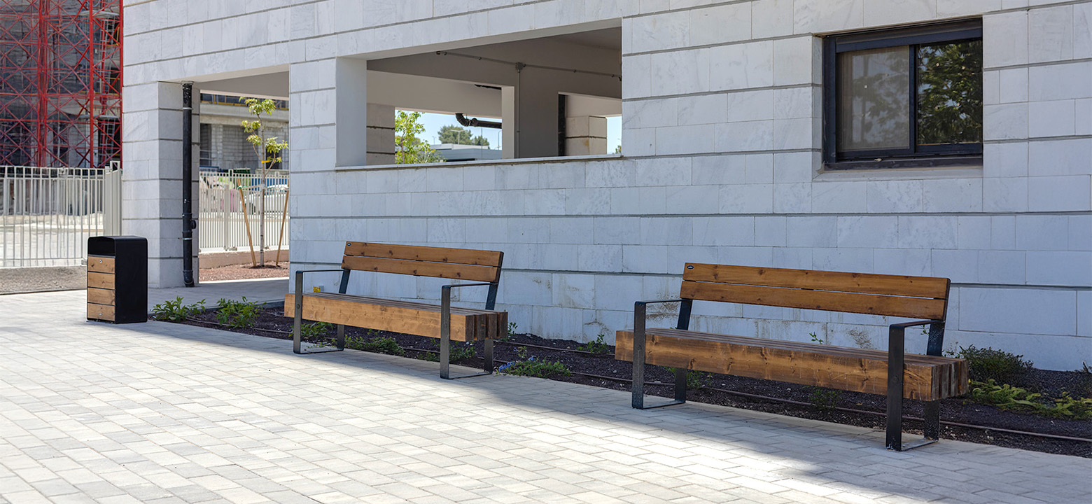 مقعد مصنوع من صفائح فولاذية مجلفنة مطلية بطلاء إلكتروستاتيكي ومُدمج مع خشب طبيعي. المقعد متوفر بعدة تشكيلات يمكن اختيارها عبر “اختر النموذج”.النماذج المتاحة من المقعد متوافقة مع معيار الوصول 1918, للملائمة للأشخاص ذوي الاحتياجات الخاصة. يمكن اختيار لون المعدن من كتالوج RAL.