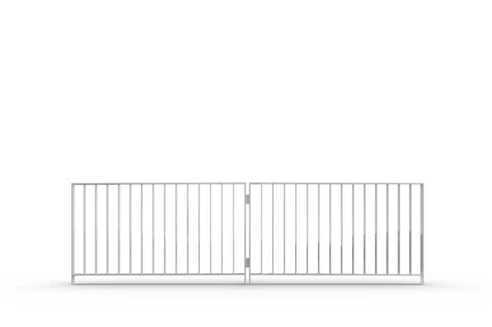 גדר המורכבת מפרופילים ופלחים שטוחים של פח מגולוון, צבועה בצביעה אלקטרוסטטית, צבע המתכת ניתן לבחירה מתוך קטלוג RAL.