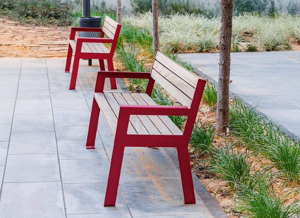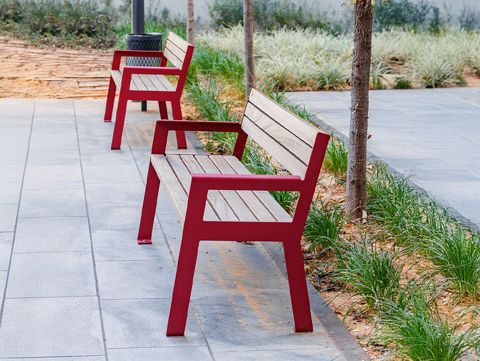 ספסל המורכב משלדת פח מגולוון בצביעה אלקטרוסטטית בשילוב עץ מלא, הספסל מגיע במס’ תצורות אליהן ניתן להגיע ב”בחר דגם”, עומד תקן נגישות 1918. צבע המתכת ניתן לבחירה מתוך קטלוג RAL.