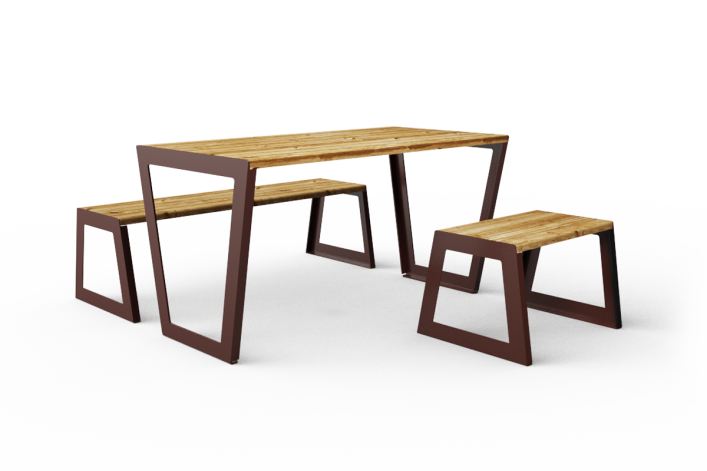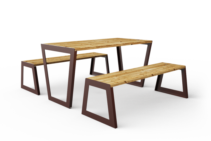 מערכת ישיבה המורכבת משולחן וספסלים ממשפחת ערבה העשויים מפח מגולוון בצביעה אלקטרוסטטית בשילוב לוחות עץ, ניתן לשרשר את המערכת, קיים גם בדגם נגיש, צבע המתכת ניתן לבחירה מתוך קטלוג RAL.