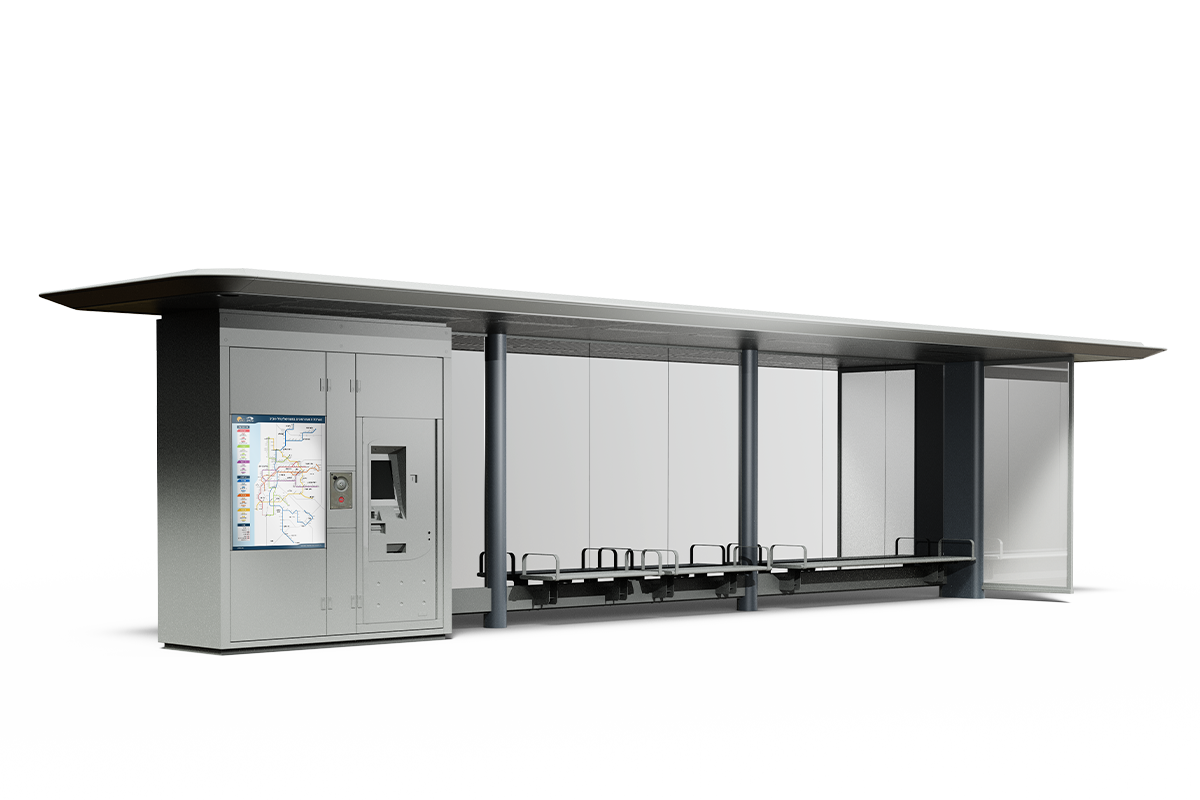 תחנה נגישה בעלת גג רחב המספק הגנה מקסימלית מתנאי מזג אוויר. שלד הסככה מורכב מפח מגולוון מחופה באלומיניום בצביעה אלקטרוסטטית בשילוב דפנות מזכוכית מחוסמת. התחנה כוללת: ספסלי המתנה, מצלמת אבטחה, עמדת כרטוס והטענת רב קו. התחנה עוצבה והותאמה לתקני נגישות משרד התחבורה.